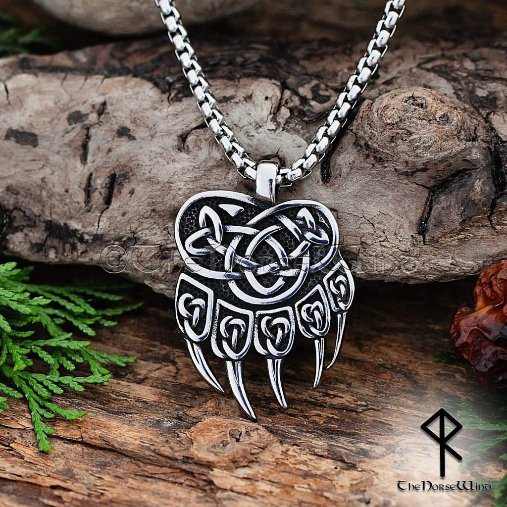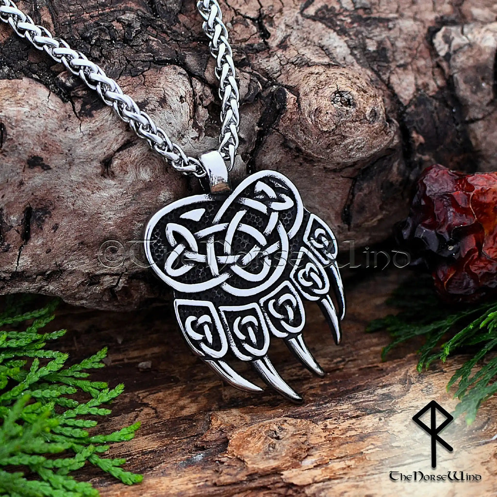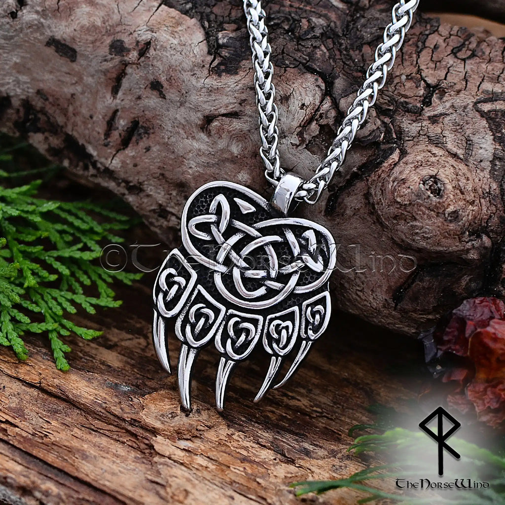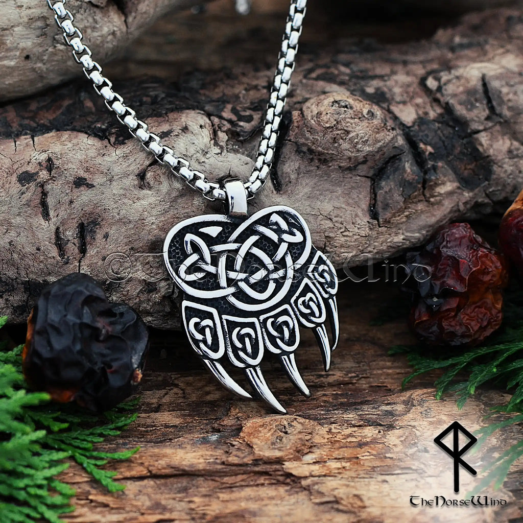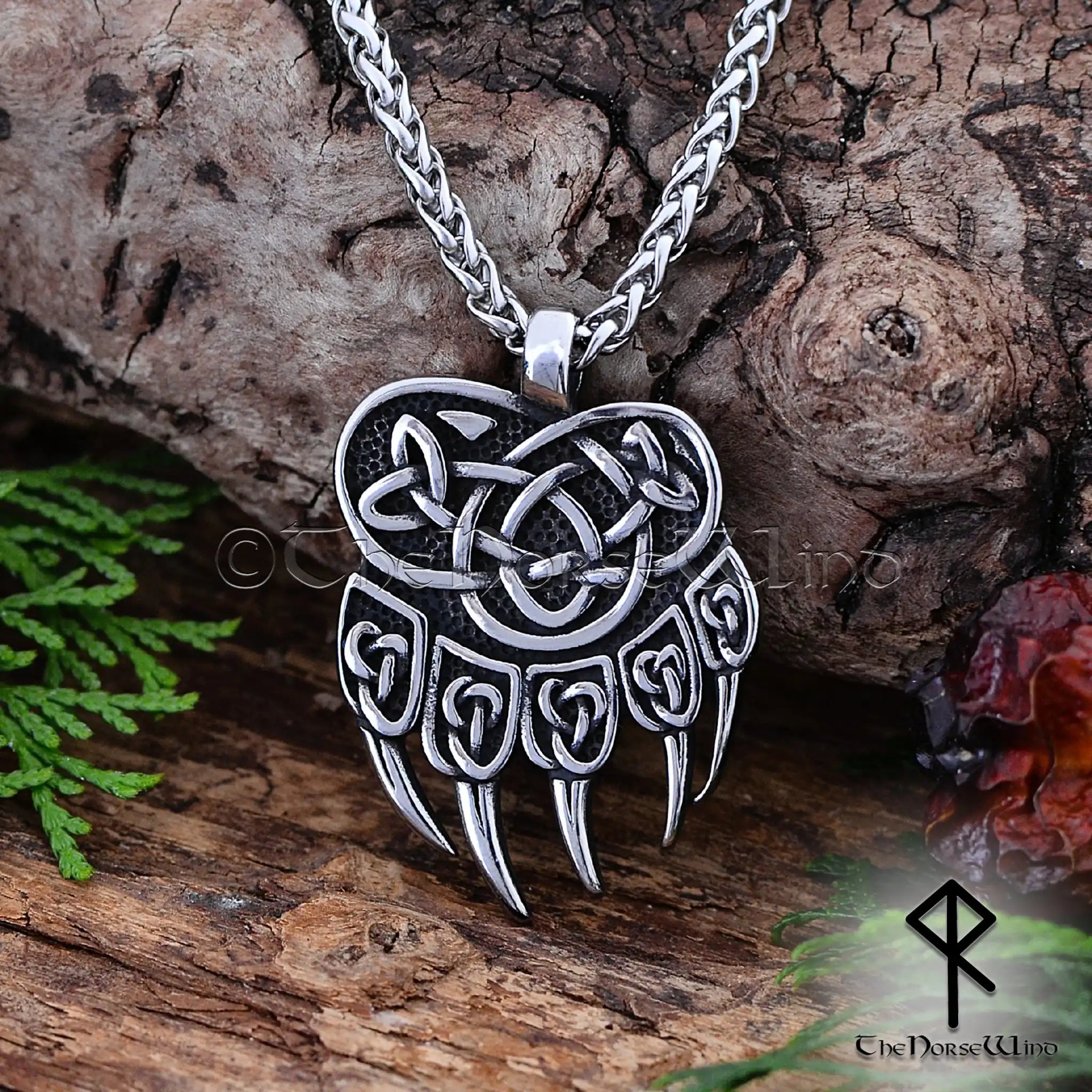 Viking Bear Paw Necklace - Berserker Pendant with Celtic Knots