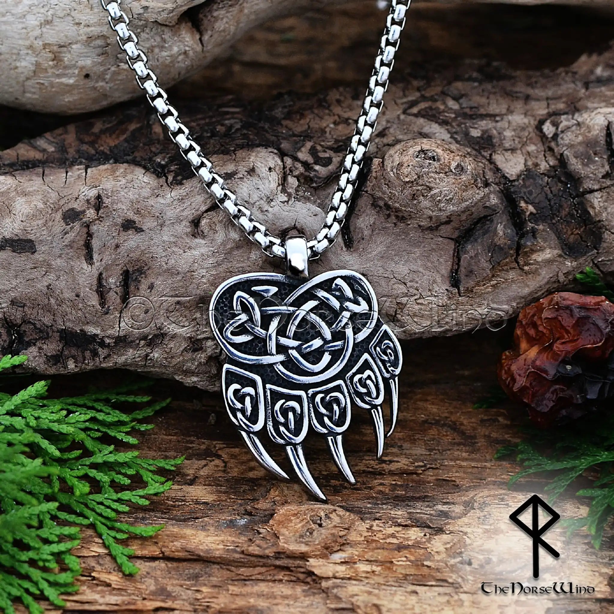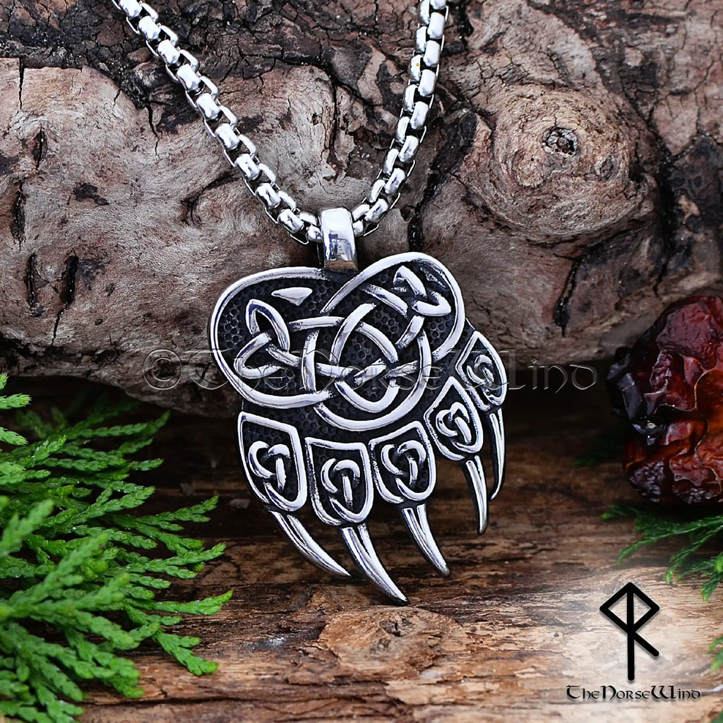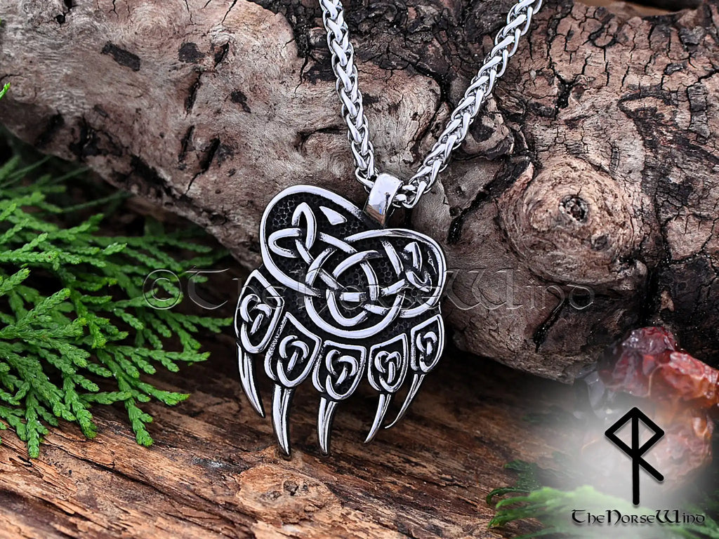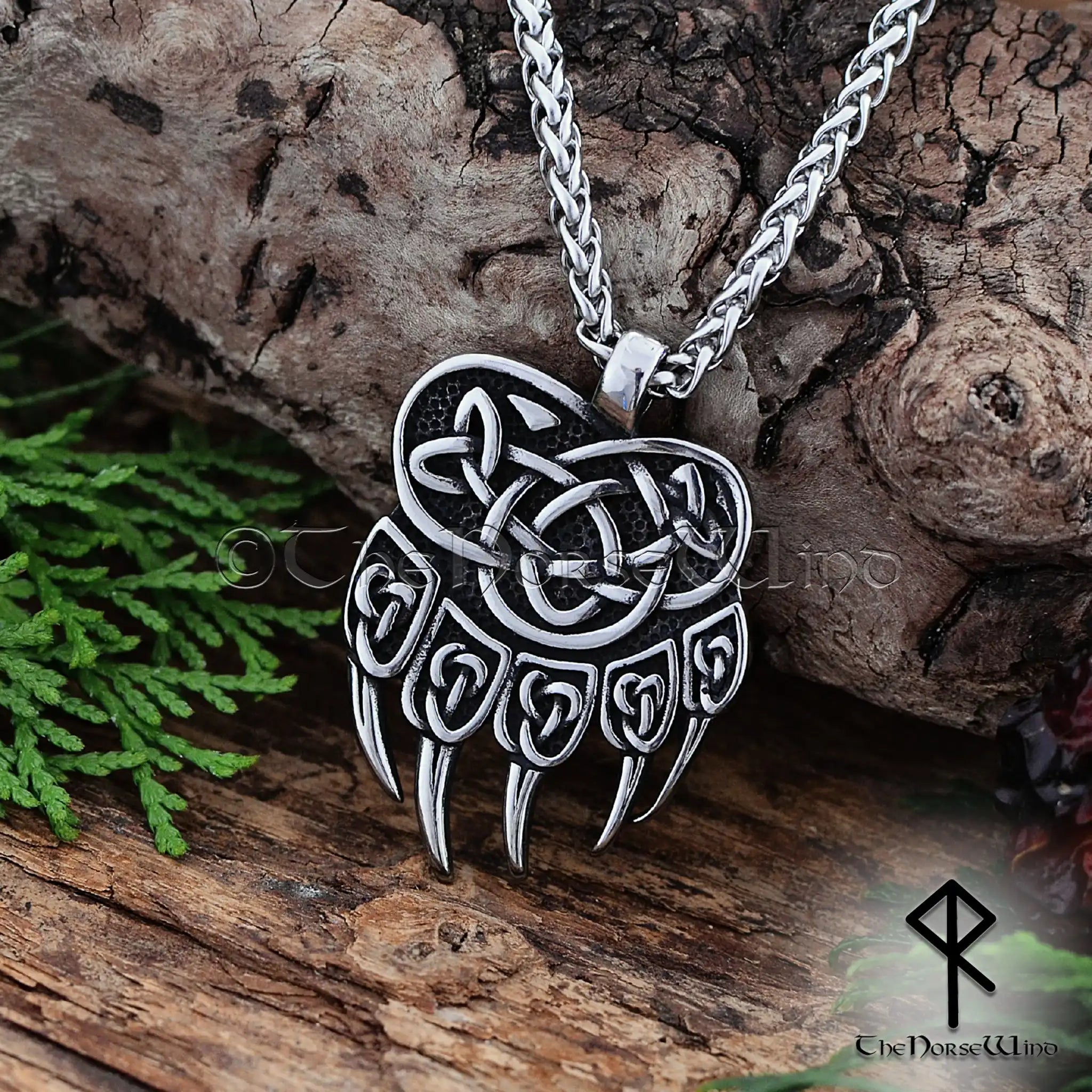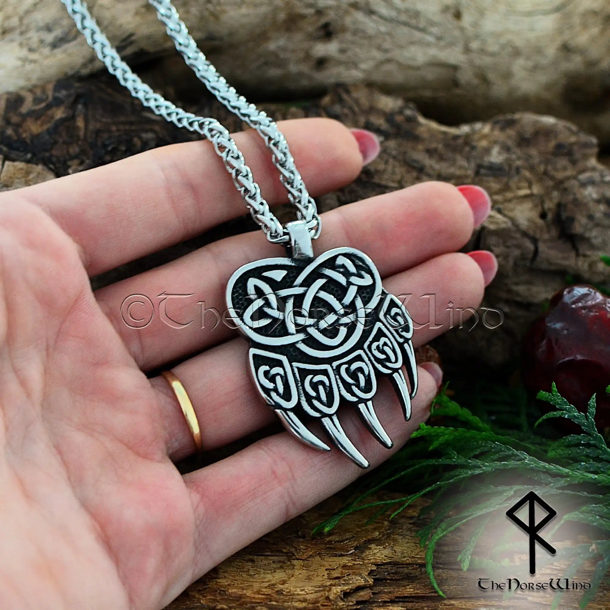 Viking Bear Paw Necklace - Berserker Pendant with Celtic Knots