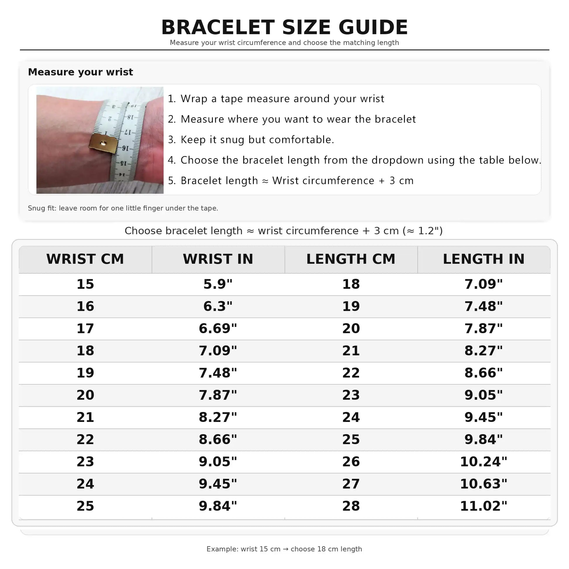 - E. g. : If your wrist circumference is 15 cm, you should order 18cm length of the bracelet.
