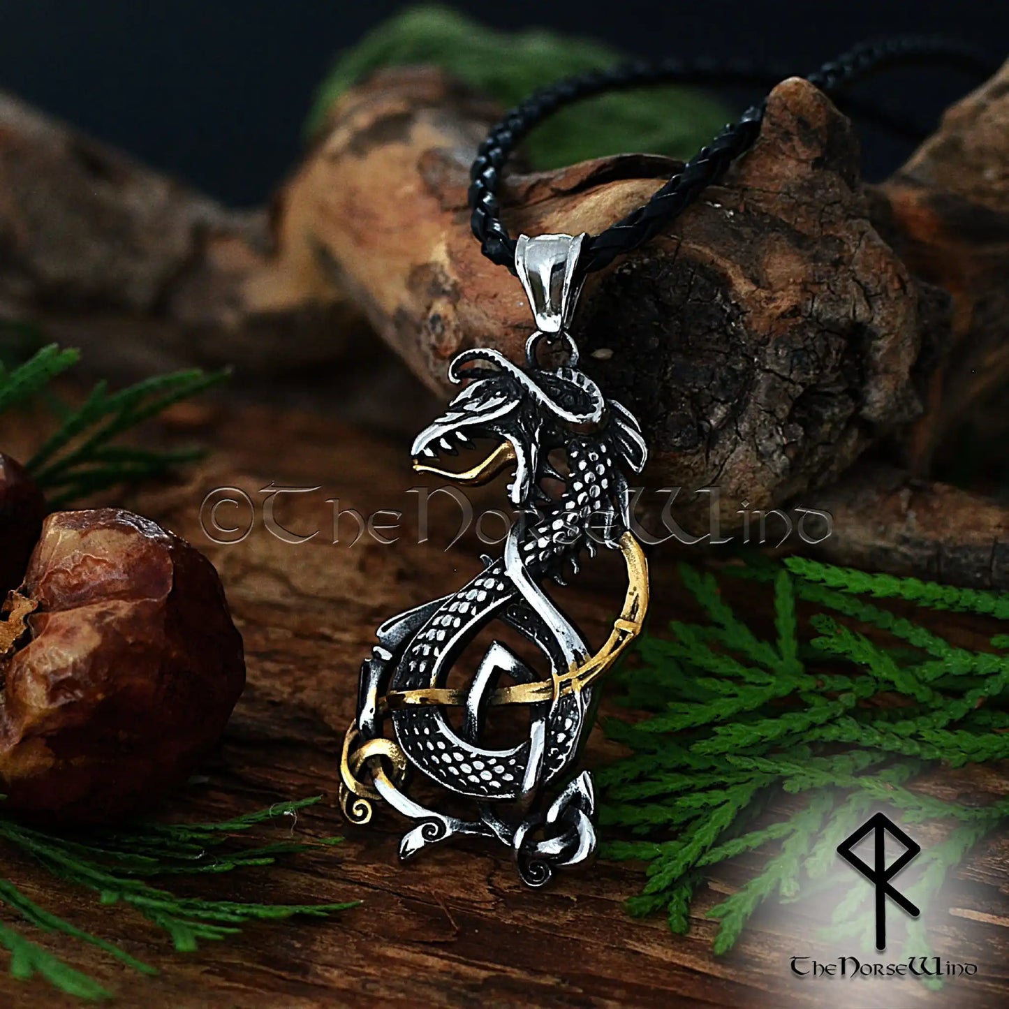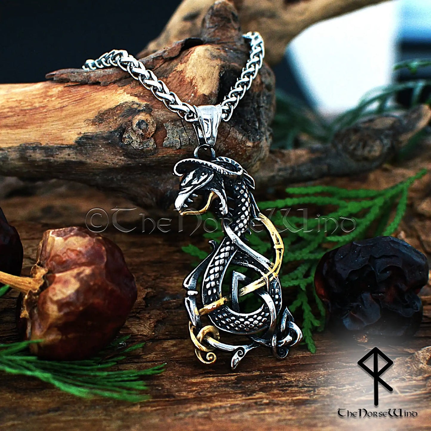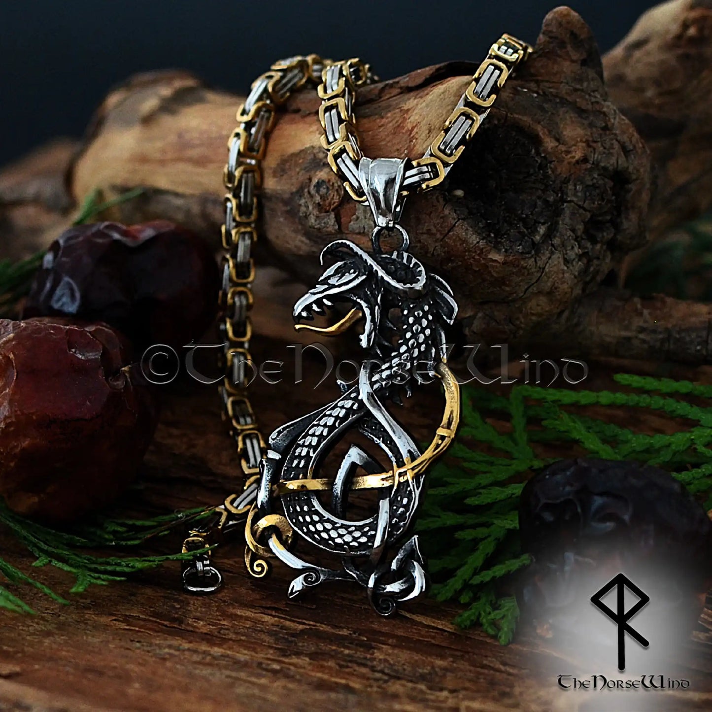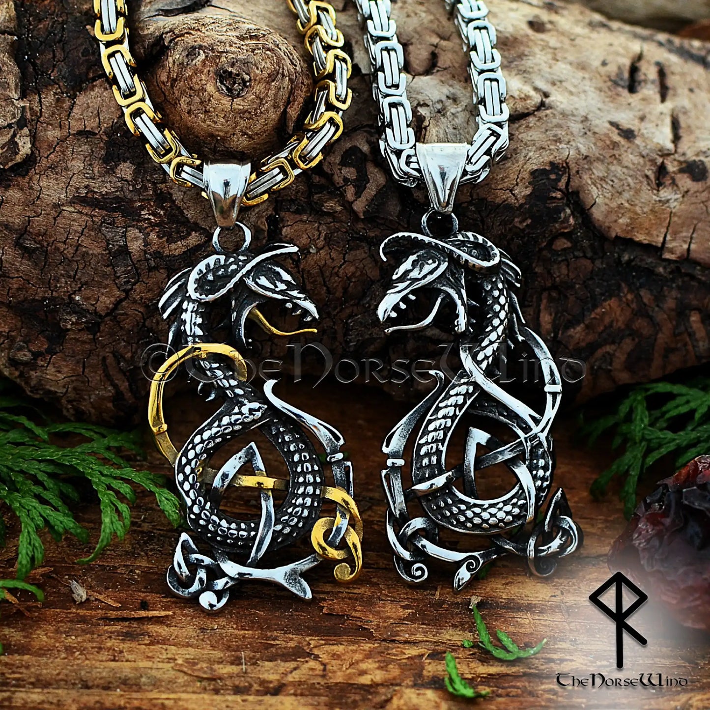 Viking Ouroboros Necklace – Jörmungandr Infinity Dragon Pendant in Silver & Gold