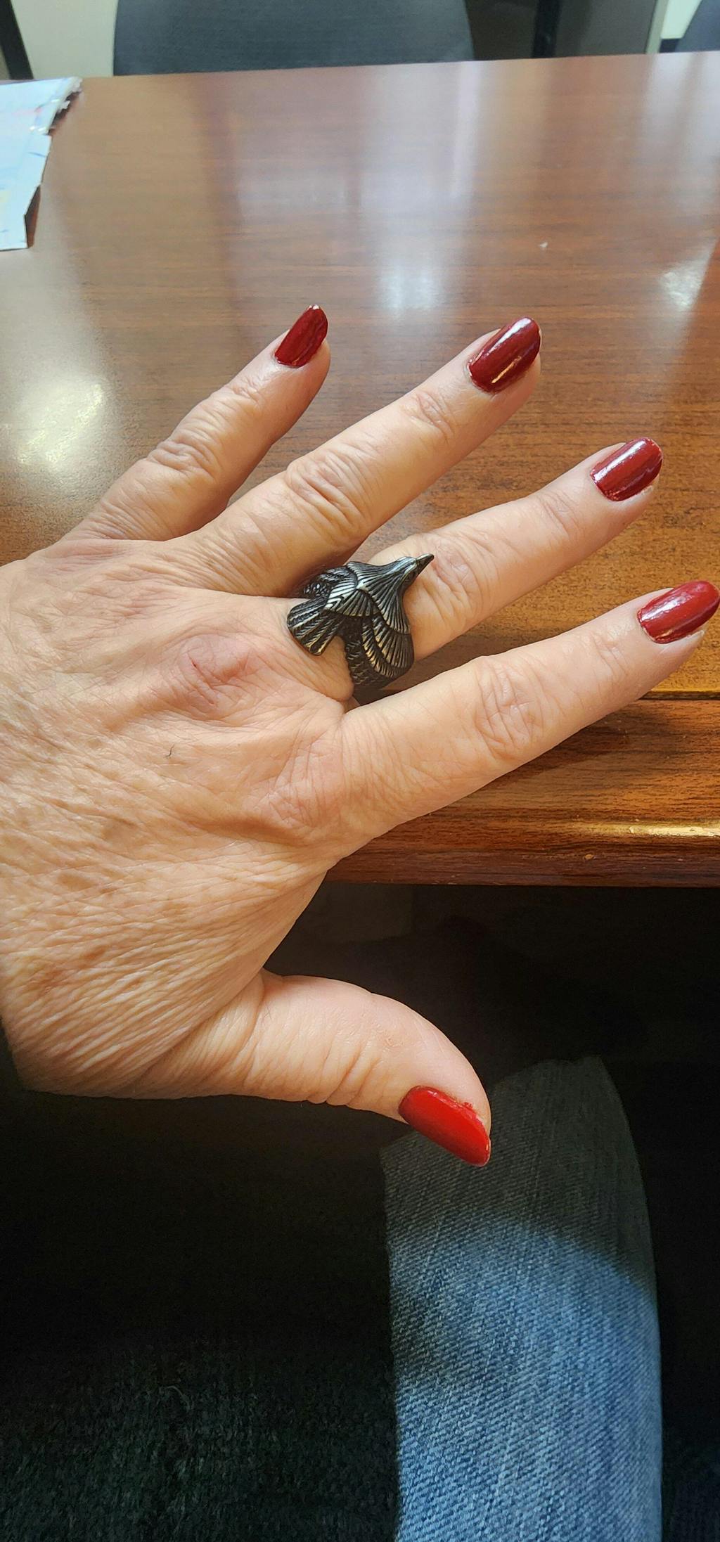 Love this ring! It's so detailed and beautifully done. It's solid and strong and I get compliments on it all the time. Truly a unique piece of jewelry. The only thing I wish was a little different is that the head and beak lay a little flatter on my finger. It gets caught in sweaters or when I put my hand in my pocket. But I still LOVE it and wear it every day.