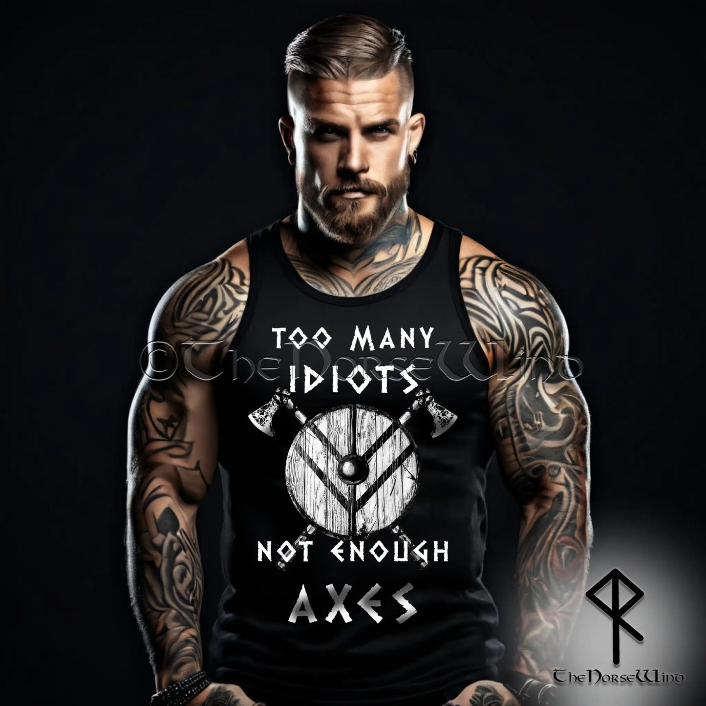 Let our Viking Tank Top - "Too Many Idiots, Not Enough Axes" - be your battle cry as you embrace the Viking ethos. It seamlessly combines Norse aesthetics with a touch of humor, making it the perfect addition to your gym wear collection or casual streetwear ensemble.