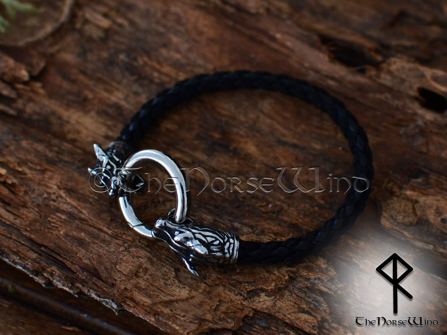Embrace the fierce spirit of Norse mythology with our stunning Viking Wolf Bracelet. Crafted with meticulous attention to detail, this leather wristband features striking Fenrir Wolf Heads and a unique O Ring design, making it a powerful statement piece that captures the essence of Viking strength and valor.